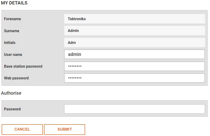 Base Station Password: this allows user to login to the base station directly – privileges will be limited to the user access rights. The base station passcode is numeric only and can be up to 8 characters.