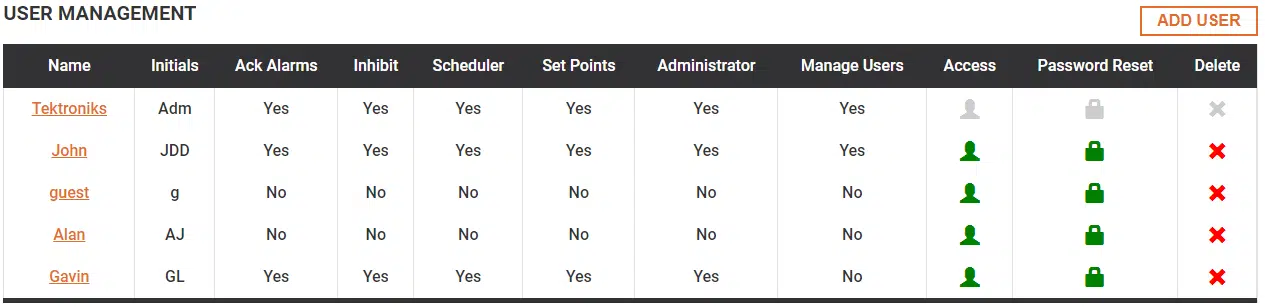 - Manage Users – this user has the ability to reset user passwords and disable access to other users – only administrator level users can add and remove users